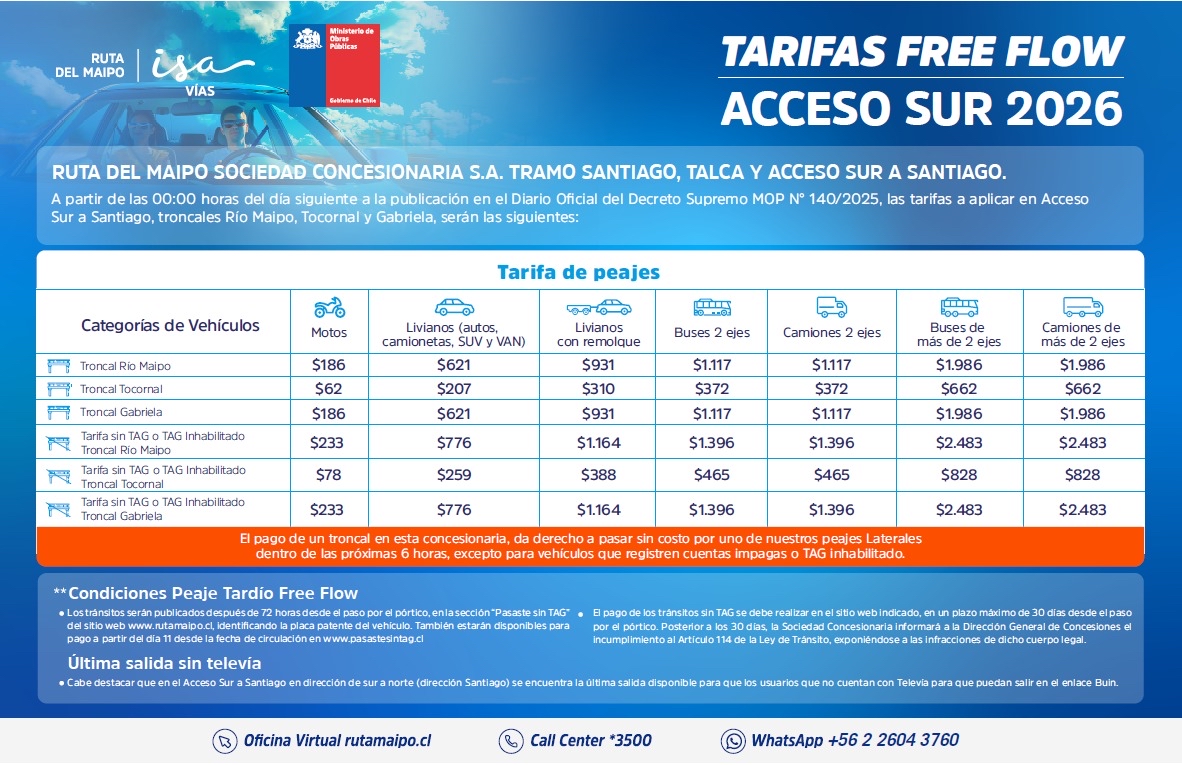 Peajes Troncal Rio Maipo, Gabriela y Tocornal. Acceso Sur a Santiago.