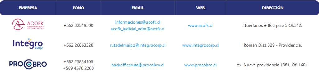 backofficeruta@procobro.cl | www.procobro.cl | Av. Nueva providencia 1881, Of. 1601. |